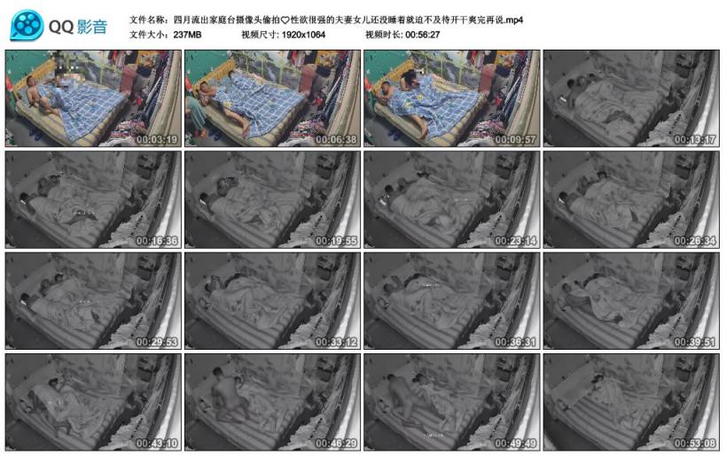 【影片名称】:家庭台摄像头偷拍性欲很强的夫妻女儿还没睡着就迫不及待开干爽完再说【影片格式】:MP4【影片大小】:237MB【影片时间】:00:56:27【影片说明】:无码【影片截图】: