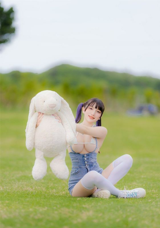 白兔玩偶和小姐姐